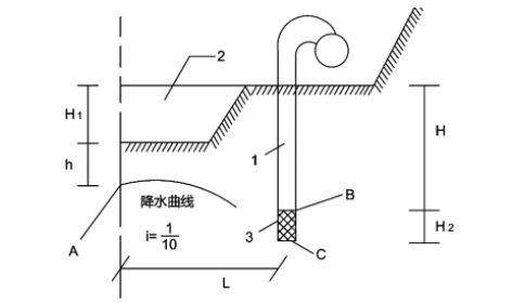 事件一:基坑开挖采用轻型井点方式进行降水,轻型井点降水剖面示意图如图4所示,其中A点应位降水曲线的最高点。