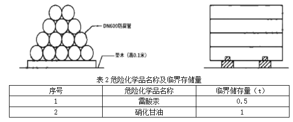 2.应如何整改防腐管堆存在的问题?计算危险品仓库风险辨识计算值,并判断是否属于重大危险源?