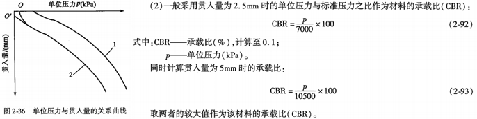 试验结果整理,对单位压力与贯入量的关系曲线进行原点修正后,承载比变小