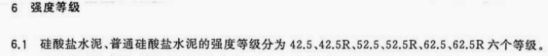 硅酸盐水泥、普通硅酸盐水泥的强度等级分为42.5、42.5R、52.5、52.5R、62.5、62.5R六个等级。