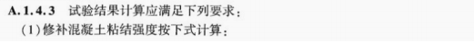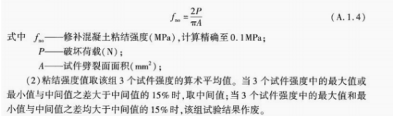 修补混凝土粘结强度值取一组3个试件强度的算术平均值。当3个试件强度中的最大值和最小值与平均值之差均大于平均值的15%时,该组试验结果作废。