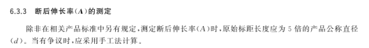 根据《钢筋泥凝土用钢材试验方法》(GB/T28900-2022),对于热轧带肋钢筋断后伸长率试验,原始标记通常为公称直径的5倍。