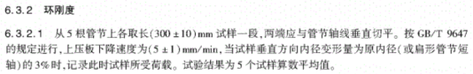 圆形塑料波纹管环刚度试验,采用试样垂直方向外径变形量为原外径的3%时的荷载计算环刚度。