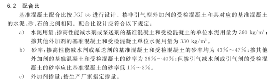 基准混凝土和受检混凝土的单位水泥用量为360kg/m3,砂率均为43%∼47%