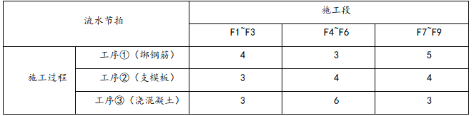 装修施工单位将地上标准层(F1~F9)划分为三个施工段组织流水施工,各施工段上均包含三个施工工序,其流水节拍如下表所示,下列说法正确的是()。