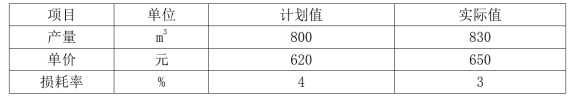 某商品混凝土目标成本与实际成本对比如下表,用因素分析法计算,单价的变动对成本的影响是()元。