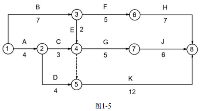2.一般工程的施工顺序还有哪些?答出图1-5经各项事件调整后的关键线路和总工期。(关键线路用工作表示如A-B-C)