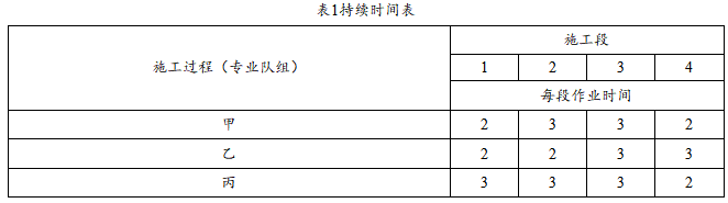 某生产工厂拟建设4幢装配式厂房。施工单位编制了甲、乙、丙三个核心施工工艺在每段上的作业时间表(单位:天),如表1所示。