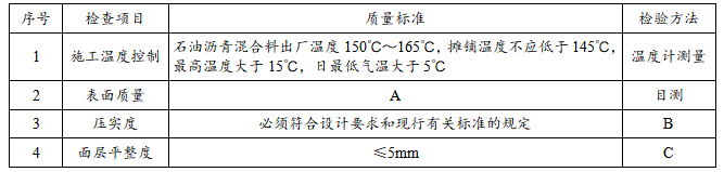 (3)沥青路面施工过程中工程质量检查的内容和要求见下表: