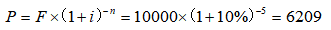 已知终值(F)=10000元,根据复利计息公式,则现值