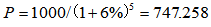 某公司希望所投资项目在第5年末回收1000万元资金,若年复利率为6%,则公司现在需要投入约()万元。