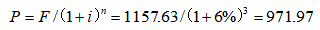 某公司年初向银行存入一笔款项,存款年利率6%,按年复利计息,在第三年末本利和为1157.63万元,则该公司年初应存入()万元。