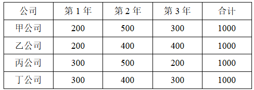 甲、乙、丙和丁四个公司投资相同项目收益方案如下表(单位:元)。若社会平均收益率为10%,根据资金时间价值原理,其投资收益最大的是()。