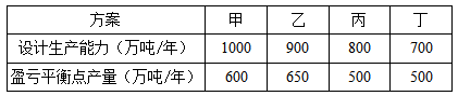 四个互斥的方案的生产能力利用率分别为,甲=600/1000=60%;乙=650/900=72.2%;丙=500/800=62.5%;丁=500/700=71.4%;生产能力利用率越小,抗风险能力越强;所以A选项符合题意。
