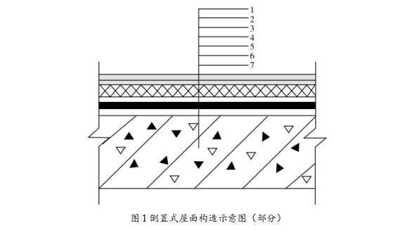 (1)工程采用倒置式屋面,屋面构造层包括防水层、保温层、找平层、找坡层、隔离层、结构层和保护层。构造示意图如图1所示。
