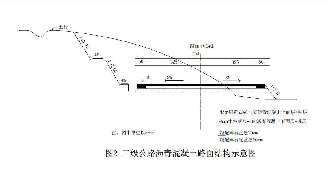 某施工单位承建某三级公路,公路起讫桩号为K0+000~K12+300,路面结构形式如图2所示,图中(A)未采用硬化处理,在沥青混凝土面层和配碎石基少地段条城碎结构之间设置下封层。项目地处丘陵地区,周边环境复杂。其中K2+000~K2+600为滑坡地段,该地段多为破碎结构的硬岩或层状结构的不连续地层,路线在滑坡地段以挖方形式通过,经挖方卸载后进行边坡防护。