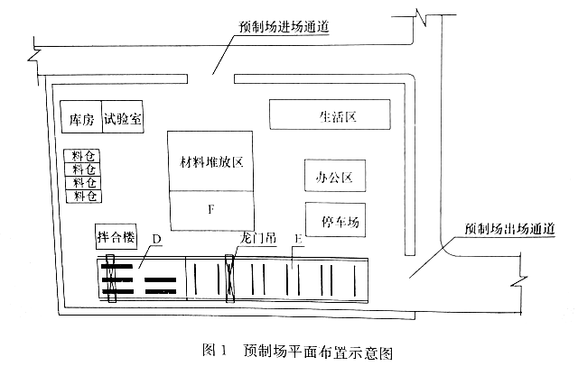 2.预制场平面布置示意图中的D、E、F区的名称各是什么?