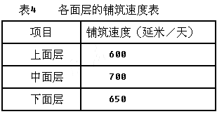 事件三:铺筑沥青混凝土时,上、中、下面层的铺筑拟采用线性流水作业方式组织施工,各面层铺筑的速度如表4:
