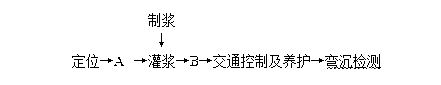 施工单位采用直接加铺法施工。对破损严重的板块进行凿除,并重新浇筑水泥混凝土板,对脱空板、不均匀沉降板采用如下工艺流程进行处理: