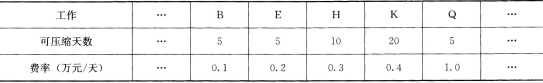 6月份钢材的现行价格指数为110,其余材料价格无变化。施工过程中,在第3个月末检查时发现E工作延误20天,C工作延误10天,F工作按计划进行,G工作提前10天。为满足业主坚持按合同工期完工的要求,在不改变网络计划逻辑关系的条件下,施工单位根据下表条件按经济性原则进行了计划调整。