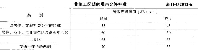 。非施工区域的噪声允许标准表1F432012-6,注意是此题是考核夜间,不是昼间。