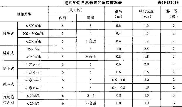 。本题考核挖泥船对自然影响的适应情况表1F432013。