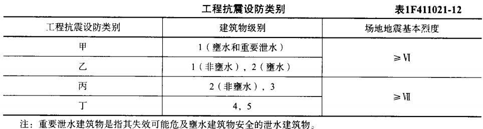 。工程抗震设防类别表1F411021-12注意,新版教材,下表中场地基本烈度不再用6和7,而是用Ⅵ、Ⅶ来代替。