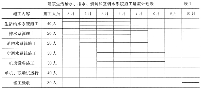 建筑生活给水、排水、消防和空调水系统施工进度计划表表1