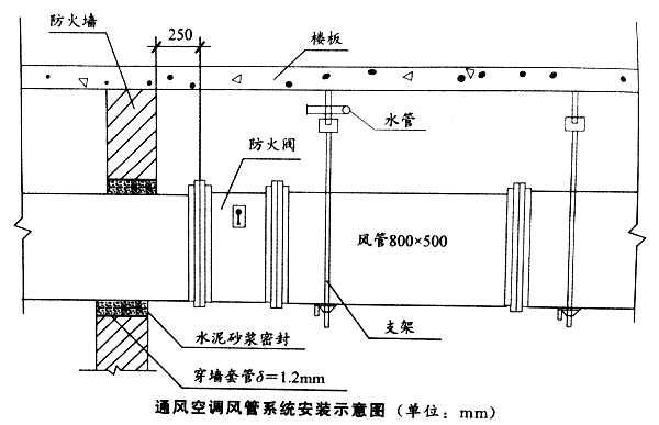中南安装公司承接某商务楼的机电安装工程,工程主要内容是通风与空调、建筑给水排水、建筑电气和消防等工程。安装公司项目部进场后,依据合同和设计要求,编制了施工组织设计,内容有:各专业工程主要工作量、施工进度总计划、项目成本控制措施和项目信息管理措施等。项目部编制了施工组织设计并报安装公司审批,安装公司以施工组织设计中的项目成本控制措施不够完善为由,要求项目部修改后重新报送。施工组织设计修改后得到安装公司批准。通风空调风管采用工厂化预制,在风管批量制作前,项目部检验了风管的制作工艺,对风管进行了严密性试验;风管系统安装完成后,项目部对主、干风管分段进行了漏光试验。项目部报监理验收时,监理认为项目部对风管的试验与检测项目不全,要求项目部完善试验与检测项目。通风空调的风管和配件安装后,监理工程师在检查中,发现风管及配件安装(如图lH420064-2所示)不符合规范要求,要求项目部整改。通风空调工程安装、试验调整合格,在试运行验收中,部分房间的风机盘管有滴水现象,经检查是冷凝水管道的坡度不够,造成风机盘管的冷凝水溢出。经返工,通风空调工程试运行验收合格。中南安装公司在向建设单位递交工程竣工验收报告时,向建设单位出具了质量保修书。