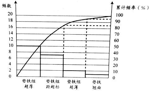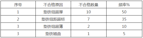 在机器设备就位后,A单位的专业质检员发现设备安装的垫铁组有20组不合格,统计表如下表所示。