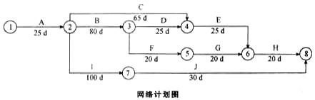 技术标编写组绘出的网络计划图工期为175d(2分)。关键线路为A、B、D、E、H(1分)。工期满足招标文件要求(1分)。