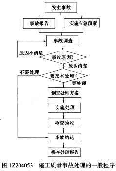 Z204053施工质量事故处理的一般程序,当查明事故原因不需要处理后,就得出事故结论然后提交处理报告。答案选DE