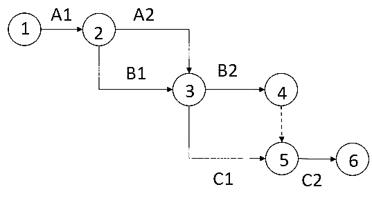 工作A2和B1共用同一对节点编号。