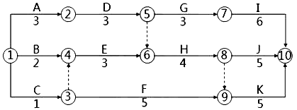 本题考查的是双代号网络计划。本题的关键线路有三条,总工期是3+3+3+6=15。