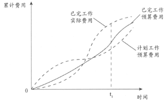 原文:1.费用偏差CV(CostVariance)费用偏差(CV)=已完工作预算费用(BCWP)-已完工作实际费用(ACWP)当费用偏差(CV)为负值时,即表示项目运行超出预算费用;当费用偏差(CV)为正值时,表示项目运行节支,实际费用没有超出预算费用。2.进度偏差SV(ScheduleVariance)进度偏差(SV)=已完工作预算费用(BCWP)-计划工作预算费用(BCWS)当进度偏差(SV)为负值时,表示进度延误,即实际进度落后于计划进度;当进度偏差(SV)正值时,表示进度提前,即实际进度快于计划进度。由题可知t1时点,SV=BCWP-BCWS>0,CV=BCWP-ACWP<0,故费用超支,进度提前。