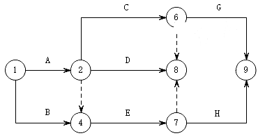 9版教材P138页双代号网络图中应只有一个起点节点和一个终点节点,图中存在⑧、⑨两个终点节点。