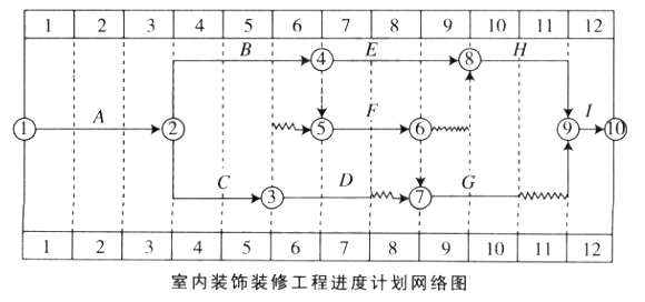事件四:主体结构验收后,施工单位对后续工作进度以时标网络图形式做出安排,如下图所示(时间单位:周)。