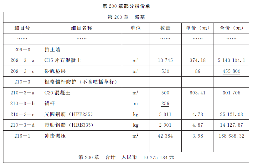2016年3月,某二级公路工程实行公开招标,招标项目估算价为7000万元人民币,资金由项目所在地省交通运输厅筹集,招标人为该省公路建设投资集团公司。招标文件参照《公路工程标准施工招标文件》(2009版)编制,投标报价方式为工程量清单报价,工程数量由招标人给出,由投标人填写单价和总价。在招投标和施工过程中,发生了如下事件:事件1:为防止投标人围标、串标或提供虚假资料,保证工程招标顺利进行,招标人在招标文件中规定:投标人需缴纳80万元投标保证金和120万元信用保证金,以现金或支票形式提交的投标保证金应当从其基本账户转出,一旦发现投标人出现违法、违规行为,一律没收所有保证金。事件2:投标人甲的总报价为6800.022万元,其中第200章部分报价单见下表。在评标过程中,评标委员会发现,清单中细目209-3-c的单价与数量的乘积与合价不一致;细目210-3-b中,招标人给定了锚杆的工程量是256m,投标人甲没有填写单价和合价。锚杆的市场综合单价为55.06元/m。其他部分的计算均正确。评标委员会按照偏差修正的有关原则对偏差进行了修正,并征得投标人甲的同意。最终投标人甲以修正后的报价中标并签订合同。