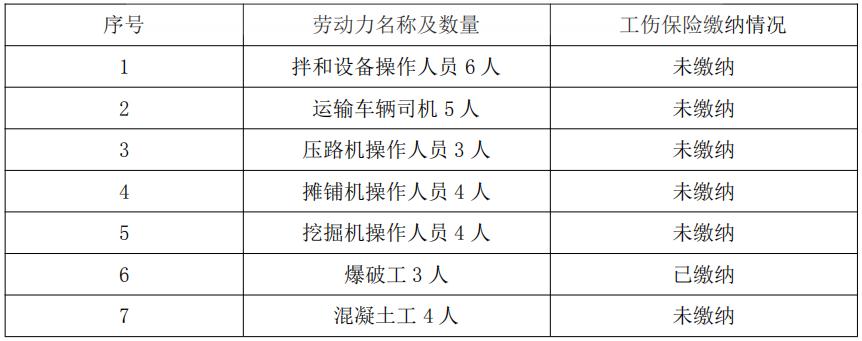 施工单位在隧道施工时配备的部分劳动力和相应工伤保险费缴纳的情况如下表。