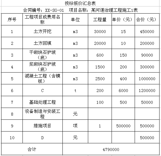 事件3:合同中关于砌体工程的计量和支付有如下约定:1.砌体工程按招标图纸所示尺寸计算的有效砌筑体以m3为单位计量;2.浆砌块石砂浆按有效砌筑体以m3为单位计量3.砌体工程中的止水设施、排水管、垫层及预埋件等费用,包含在砌体项目有效工程量单价中,不另行支付。4.承包人按合同要求完成砌体建筑物的基础清理和施工排水需的费用包含在措施项目费用中,不另行支付。问题:1.依据背号资料,根据《中华人民共和国招标投标实施条例》、《水利水电工程标准施工招标文件》(2009年版)的相关规定,指出事件1中投标人A投标行为的不妥之处,并说明正确的做法。2.指出“投标报价汇总表”中的C和D所代表的工程项目或费用名称。3.事件2中,已标价工程量清单计算附件包含的内容有哪些?4.指出并改正事件3合同约定中的不妥之处。