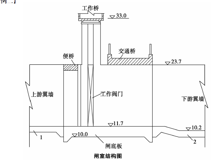 某平原区拦河闸工程,设计流量850m³/s,校核流量1020m³/s,闸室结构如下图所示。本工程施工采用全段围堰法导流,上、下游围堰为均质土围堰,基坑采用轻型井点降水。闸室地基为含少量砾石的黏土,自然湿密度为1820~1900kg/m³,基坑开挖时,施工单位采用反铲挖掘机配自卸汽车将闸室地基挖至建基面高程10.0m,弃土运距约1km。