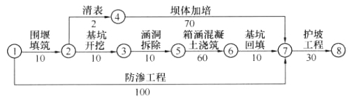 施工过程中发生如下事件:事件1:因料场征地纠纷,坝体加培推迟了20天开始。事件2:因设备故障,防渗工程施工推迟5天完成。事件3:箱涵混凝土浇筑施工中,因止水安装质量不合格,返工造成工作时间延长4天,返工费用2万元。事件4:至2月底,承包商累计完成工程进度款为450万元;承包商提交的3月份工程进度款支付申请报告中,包括返工费用2万元和经监理机构确认的合同工程价款320万元。问题:1.指出网络计划的关键线路(用节点表示)和计划工期。2.分别指出事件1、事件2、事件3对工期的影响;指出上述事件对工期的综合影响和承包商可索赔的工期。3.计算3月份实际支付工程款。4.基坑回填时,坝体与涵洞连接处土方施工需要注意的主要问题有哪些?