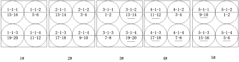 事件一:项目部依据工程地质条件,安排4台反循环钻机同时作业,钻机工作效率(1根桩/2d)。在前12天,完成了桥台的24根桩,后20天要完成10个承台的40根桩。承台施工前项目部对4台钻机作业划分了区域,见图4-3,并提出了要求:①每台钻机完成10根桩;②一座承台只能安排1台钻机作业;③同一承台两桩施工间隙时间为2天。1#钻机工作进度安排及2#钻机部分工作进度安排如图4-4所示。