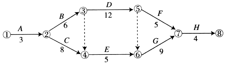 A选项的工期为3+6+12+5+4=30天;B选项的工期为3+6+5+9+4=27天;C选项的工期为3+6+12+9+4=34天;D选项的工期为3+8+5+9+4=29天;关键路线即总工期最长的路线,经计算为C选项正确。
