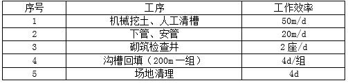 项目部承建的雨水管道工程管线总长为1000m,采用直径为600mm的混凝土管,柔性接口;每50m设检查井一座。管底位于距地表下4m,无地下水,采用挖掘机开槽施工。项目部根据建设单位对工期的要求编制了施工进度计划。编制计划时,项目部使用的指标见下表: