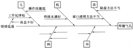 某安装公司在南方沿海承担了一化工装置的安装工作,该装置施工高峰期正值夏季,相对湿度接近饱和。该公司建造了临时性管道预制厂房,采用二氧化碳气体保护焊进行焊接工作。根据装置内管道的特点,项目部技术人员确定了管道预制程度为30%,制定了一条直管段配焊一个管件(弯头或法兰等)的预制方案。其工作顺序为:直管段下料→开坡口→直管段坡口、管件坡口清理→直管段与管件组对→焊接→焊缝外观检查→焊缝无损探伤→运至安装现场。在预制管道时,无损检测工程师发现大量焊口存在超标的密集气孔,情况较为严重,项目部启动了质量事故报告程序,安装公司派出人员与项目部相关人员一起,组成了调查小组,按程序完成了该事故的处理。此次质量事故使管道预制工作滞后了三天,影响了施工进度。项目部启用了一套备用二氧化碳气体保护焊系统后,发现直管段下料制约了组焊工作的进度,项目部立即采取调整进度的措施,保证了施工进度。问题:1.列出质量事故处理程序的步骤。2.安装公司组织的事故调查小组应由谁组织?调查小组的成员有哪些?3.试用因果分析图(见下图)分析事故原因中的材料、环境因素。(不需要画图,在答题纸上用文字表述)